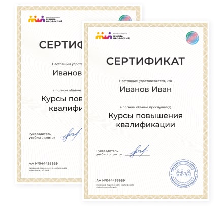 По итогам обучения на курсе вы получаете электронный персональный сертификат.